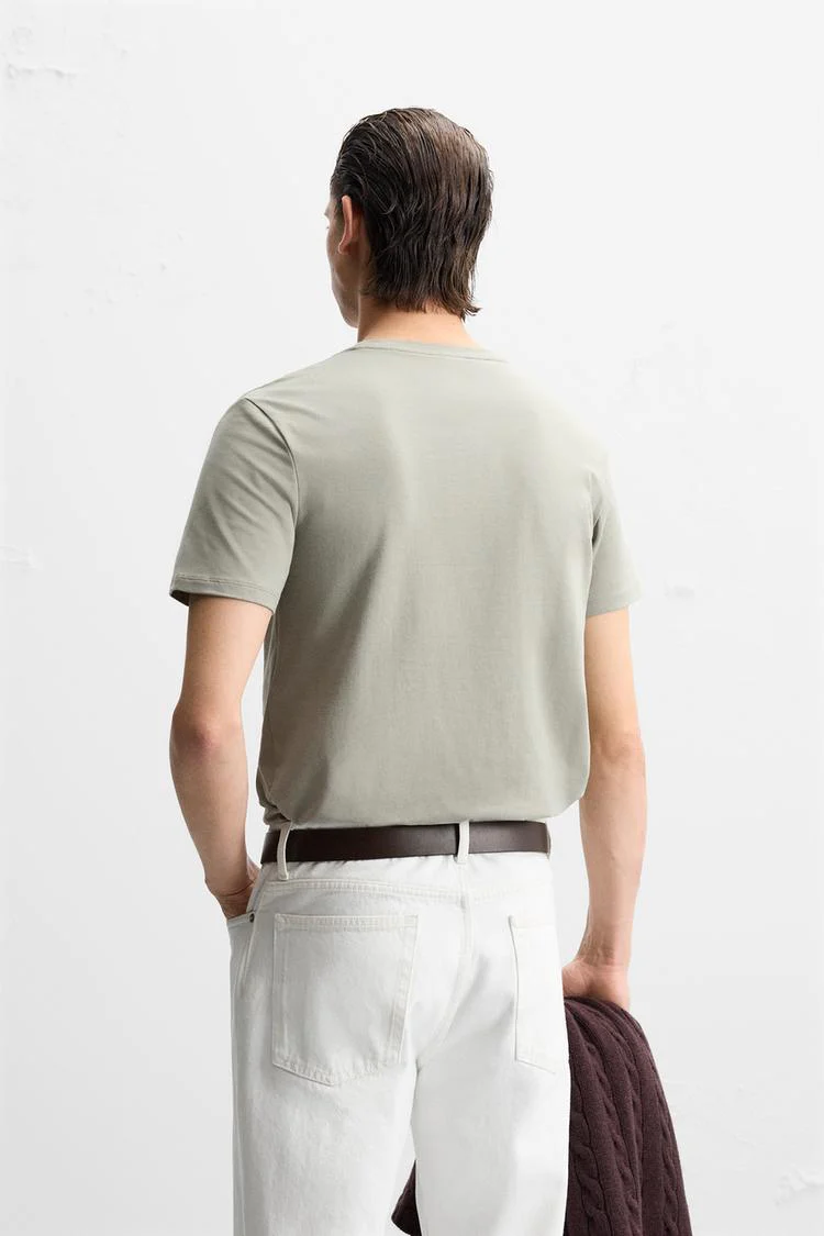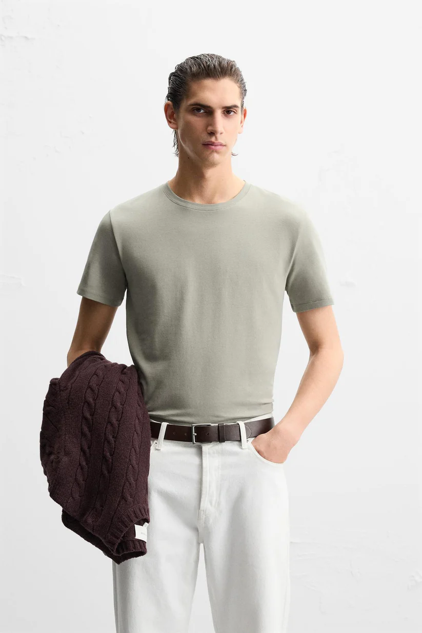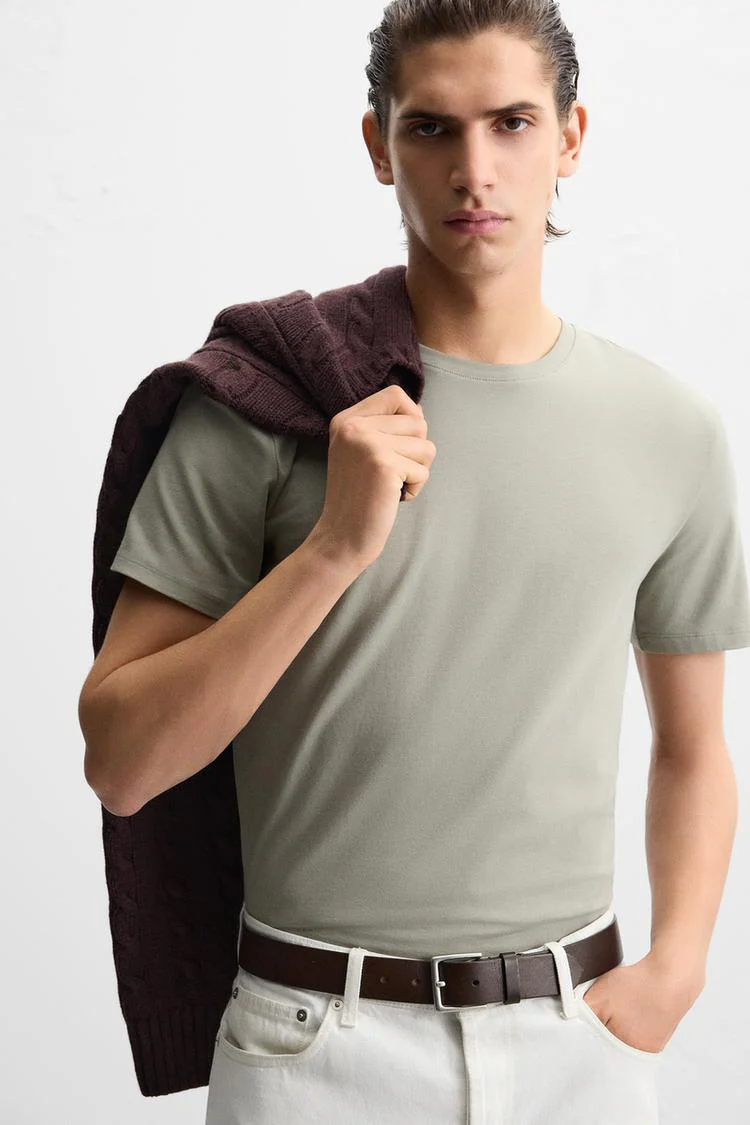 Slim-fit shirt with a round neckline and short sleeves for a sharp, fitted look.