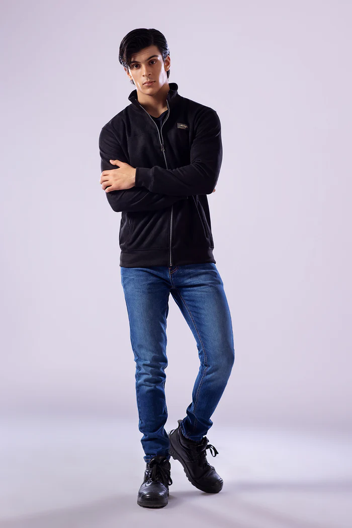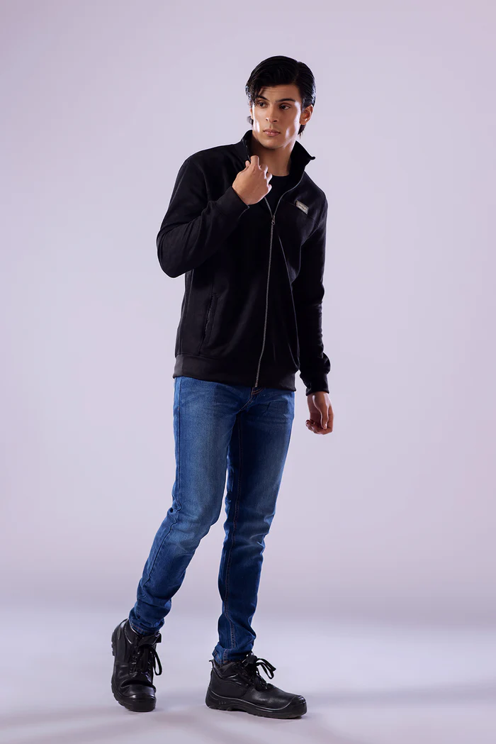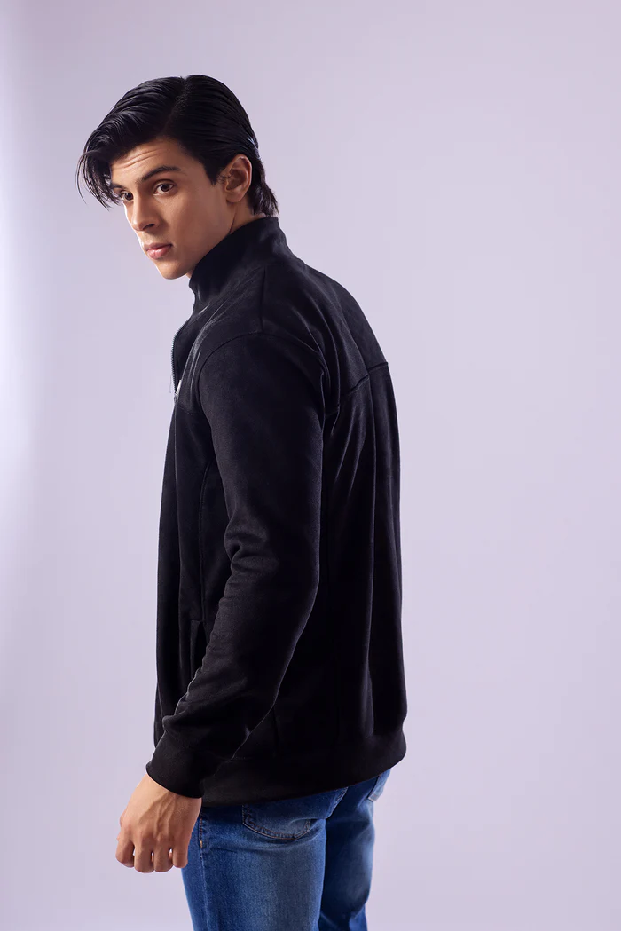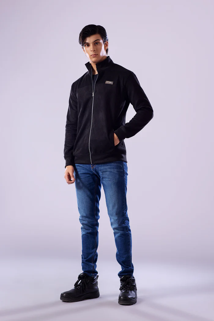 Stay sharp this winter with this Black Suede Upper Jacket — designed for men who value both comfort and style. Crafted from premium suede fabric in a classic black shade, this zip-up jacket delivers a sleek, modern look for any occasion. A signature slogan badge adds a distinct touch, making it a versatile choice for the colder months.