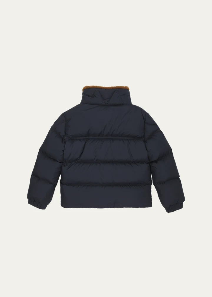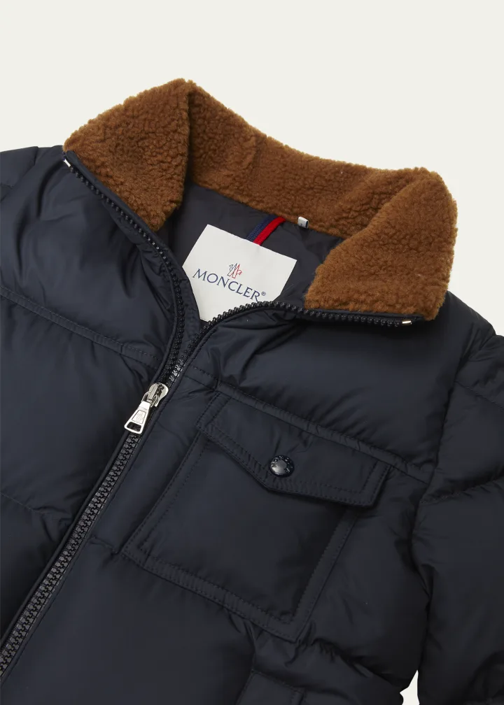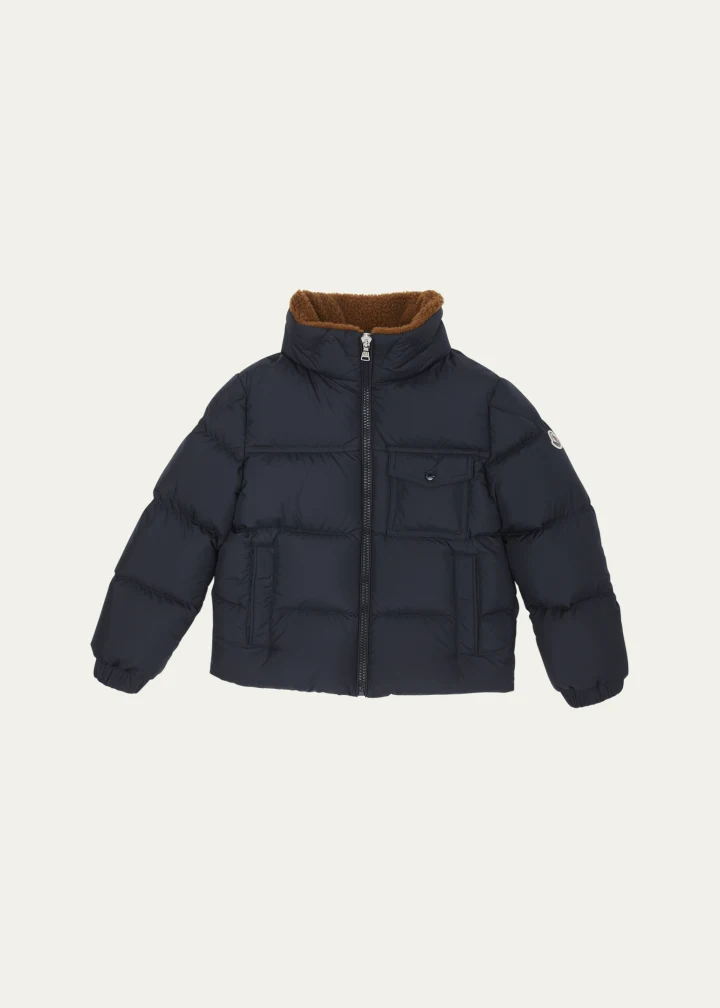 The Moncler “Cayden” jacket offers a luxurious feel with its faux fur (polyester) trim on the interior. It features a stand collar for added warmth and long sleeves with elasticized cuffs for a secure fit. The jacket has a full zip front for easy wear, along with a flap chest pocket and side welt pockets for functionality. Filled with down and feathers for insulation, it is crafted from durable polyester with a polyester lining. This stylish and cozy jacket is hand washable and made in Romania.