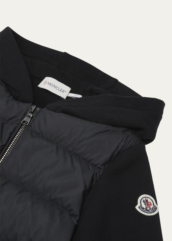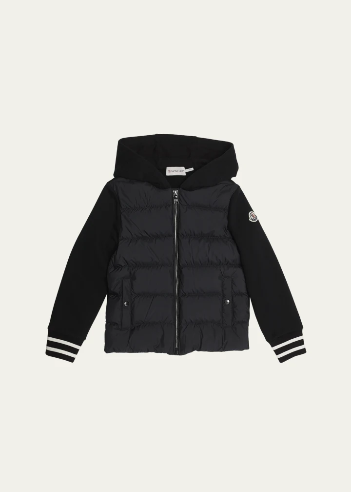 The Moncler combo puffer jacket features a sleek design with a classic logo bell at the sleeve, adding a touch of branding to its style. It has a hooded neckline for extra warmth and protection, along with long sleeves and a full zip front for easy wear. The jacket includes side welt pockets for functionality and banded cuffs with ribbed trim for a snug fit. Made from a durable polyester and cotton blend with a polyester lining, it is machine washable in cold water for convenience. Crafted in Bulgaria, this jacket combines luxury with practicality.