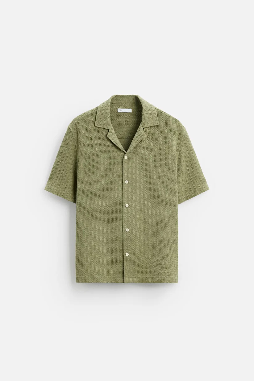 Comfortable relaxed-fit shirt crafted from soft cotton fabric. Features a spread collar, short sleeves, and a front button closure. Designed with a hem that includes subtle side slits for added ease.