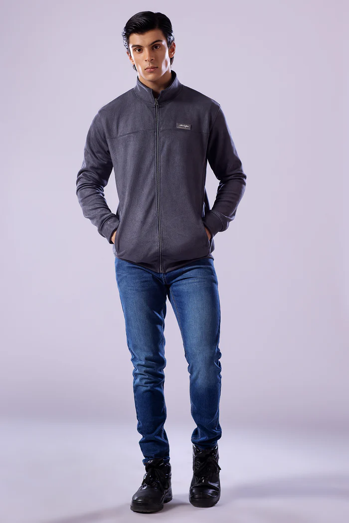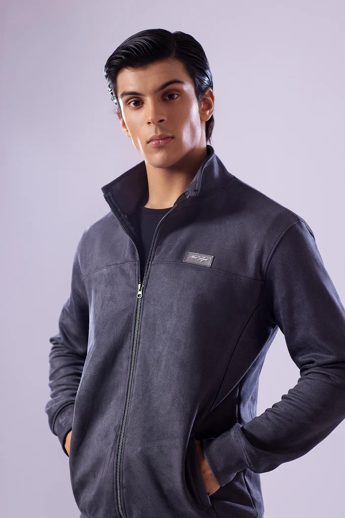 Upgrade your winter style with this Grey Suede Upper Jacket, crafted from soft, high-quality suede fabric in a sleek grey tone. Designed to provide warmth and a contemporary look, this zip-up jacket is perfect for the colder season. A signature slogan badge adds a bold, standout touch.