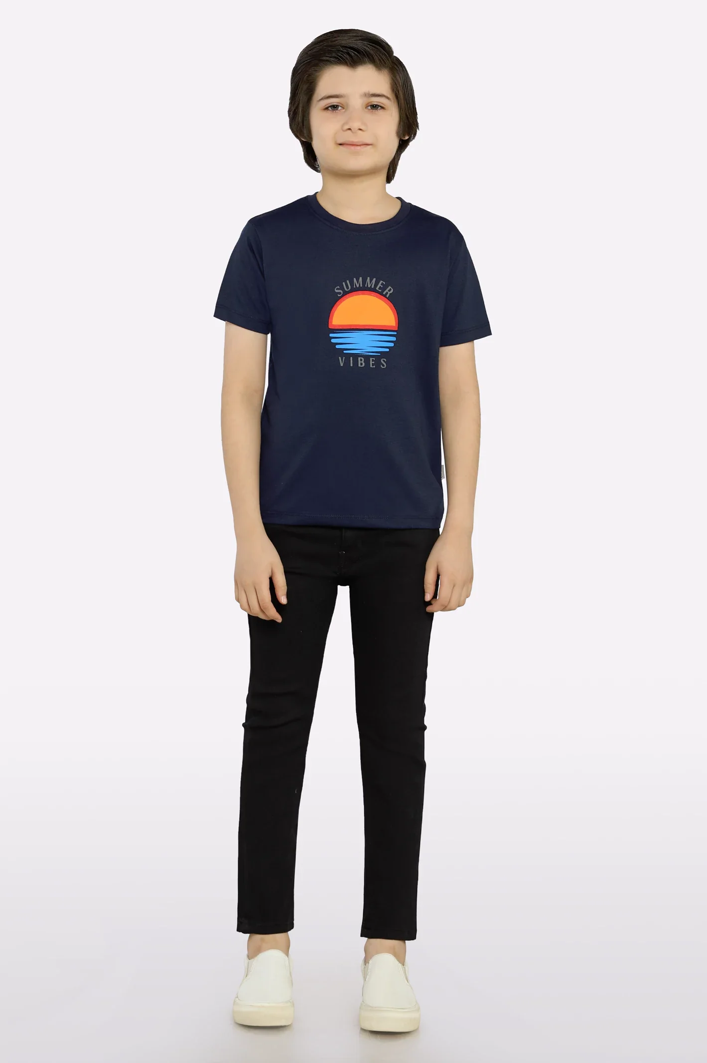 Add a bold touch to your casual wardrobe with this Navy Graphic Printed T-Shirt. Designed for comfort and everyday style, this tee features a striking graphic print on soft, breathable fabric. The classic navy color offers versatile styling options, making it easy to pair with jeans, joggers, or shorts. Perfect for relaxed outings, weekend wear, or layering, this t-shirt is a must-have staple for those who love fashion with a statement.